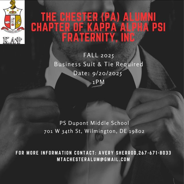 Formal informational for gentlemen interested in becoming members of the Chester (PA) Alumni Chapter of Kappa Alpha Psi Fraternity, Inc.